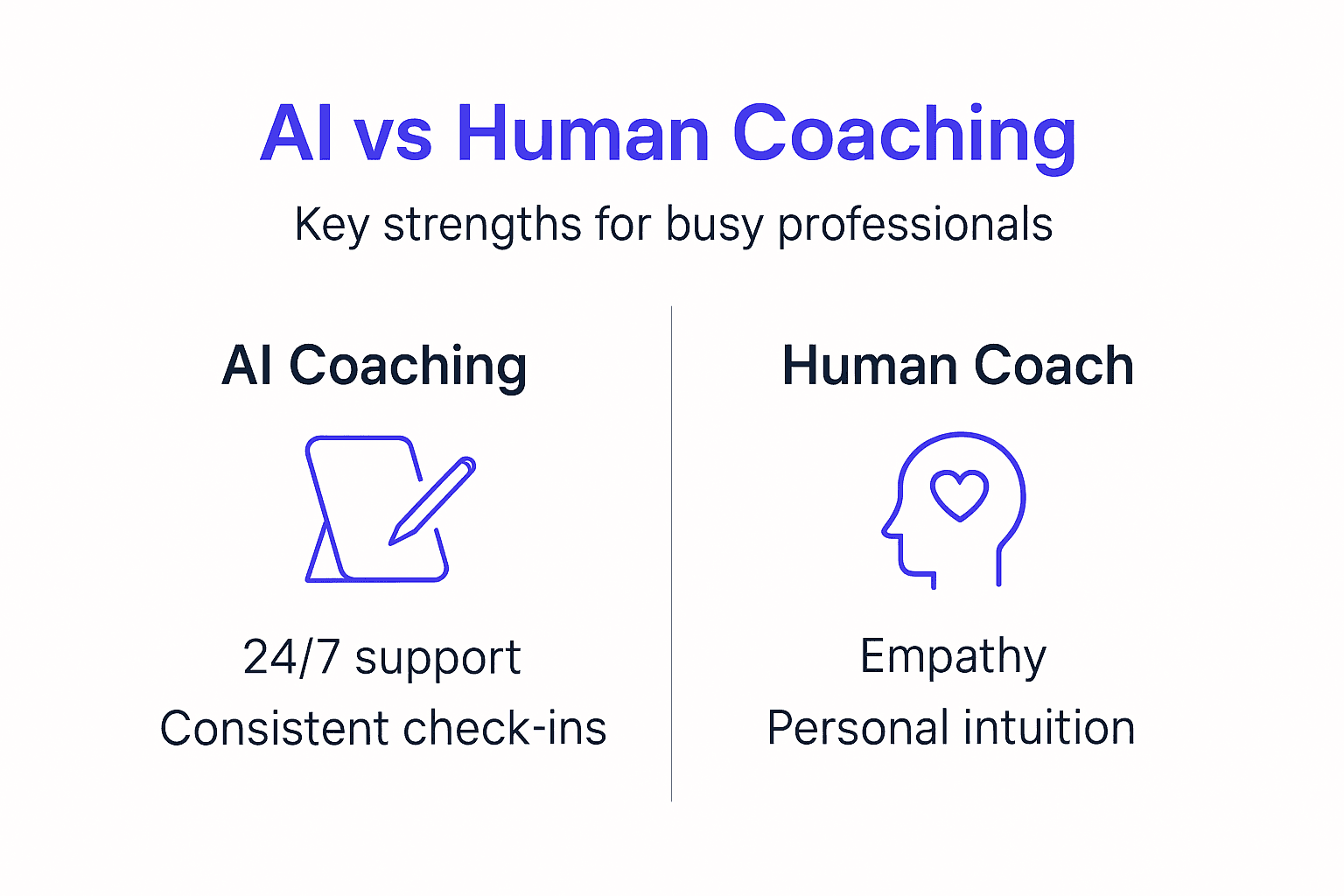 Pro Tip: Use AI voice coaching for daily accountability and habit tracking while reserving monthly human coaching sessions for strategic planning and emotional processing that requires deeper empathy.