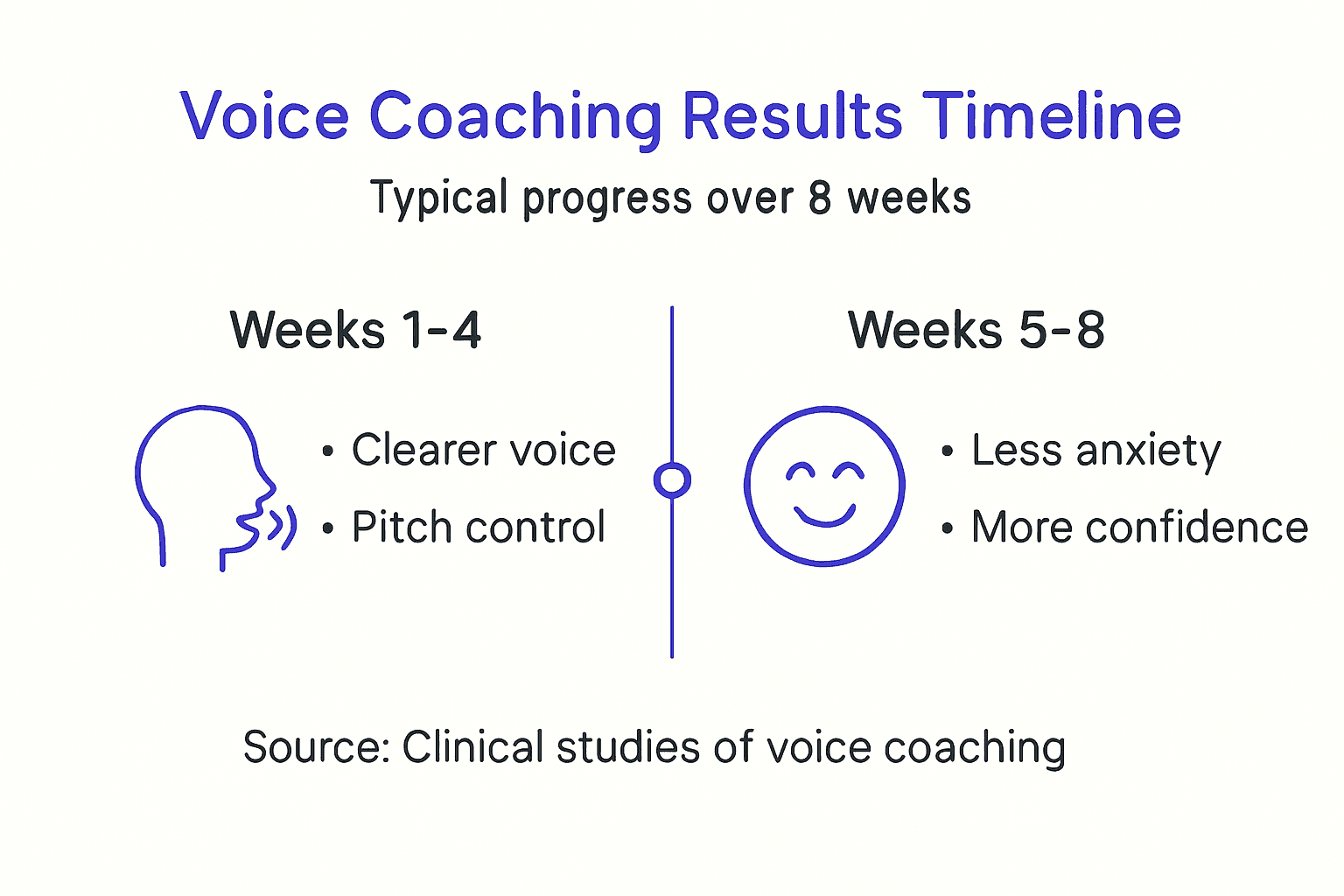 "Voice coaching improvements follow a nonlinear path with initial rapid gains, followed by plateaus, then breakthrough moments. Consistent practice through plateaus separates those who achieve lasting improvement from those who quit prematurely."